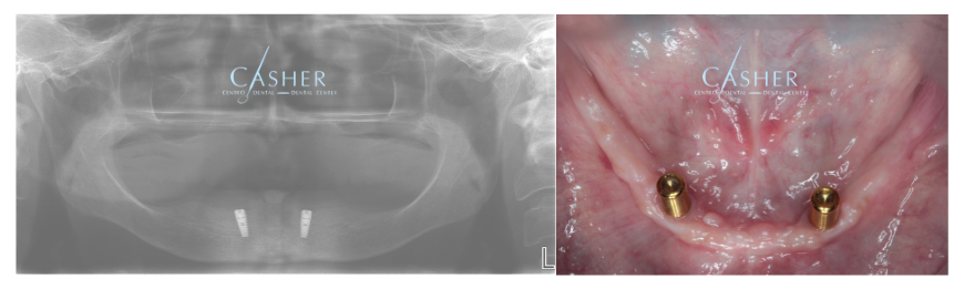 - Implantes colocados en mandíbula inferior, perfectamente integrados.